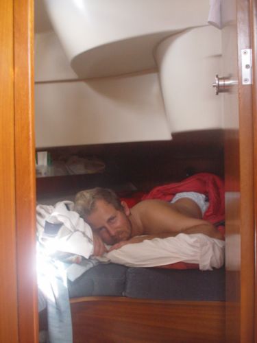 La pluie: la chaussette de Spi se coince en haut du mat. Le beau
